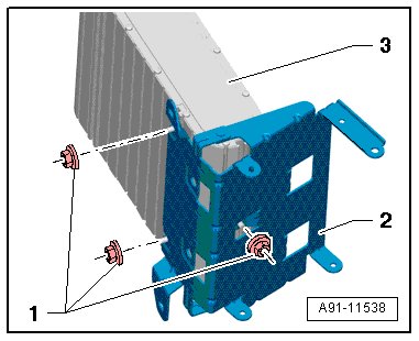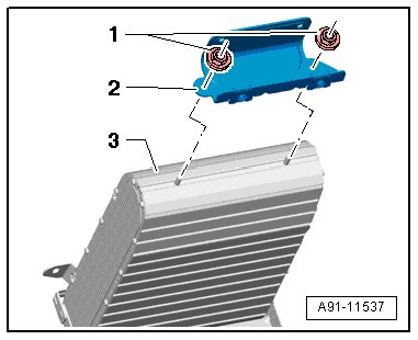 - Remove the nuts - 1 - at the top of the bracket - 2 - and then remove the bracket - 2 - from digital sound system control module 2 - 3 -.