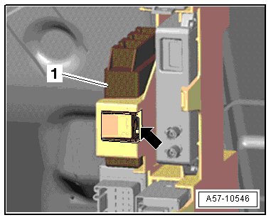 - Open the clip - arrow - and remove the vehicle positioning system interface control module (J843) to the side.