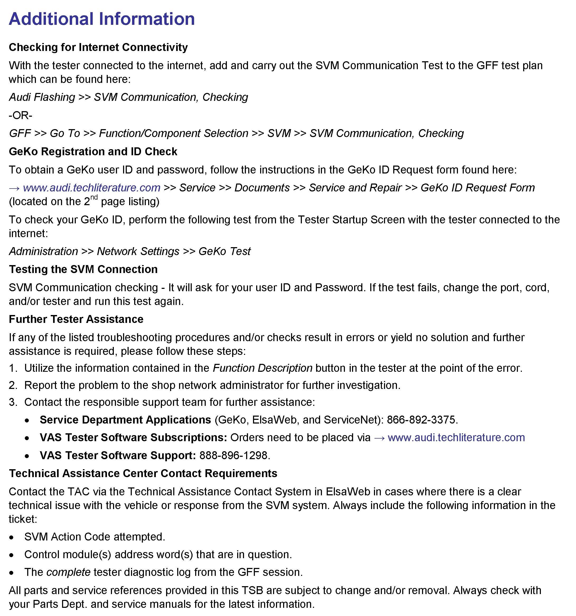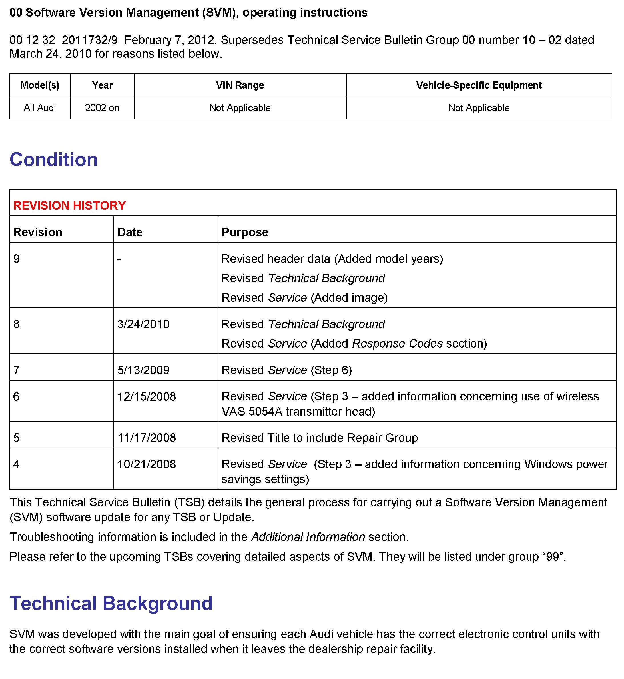 ^ TSB 2011732 00 Software Version Management (SVM), operating instructions.