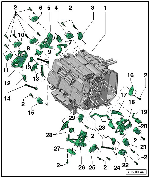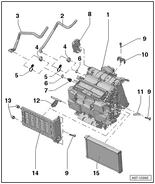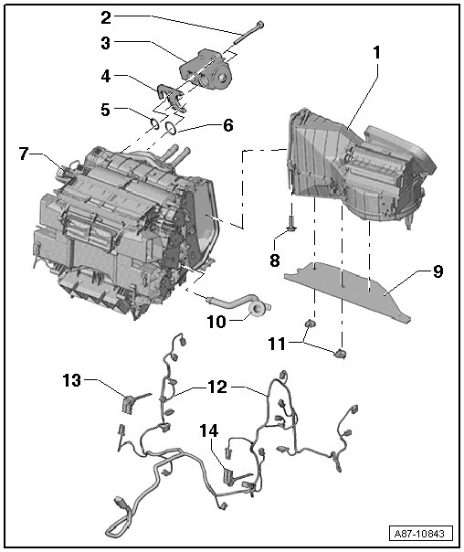 A/C unit with evaporator, removing and installing, refer to => [ Front Heating and A/C Unit ] Front Heating and A/C Unit.