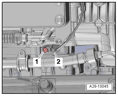 - Remove the bolt - 1 - and the engine speed sensor (G28).