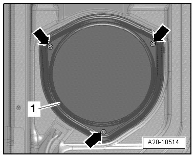 - Remove the bolts - arrows - and remove the locking flange cover - 1 -.