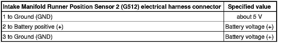 - Using a Multimeter , check the Intake Manifold Runner Position Sensor 2 (G512) electrical harness connector for voltage.