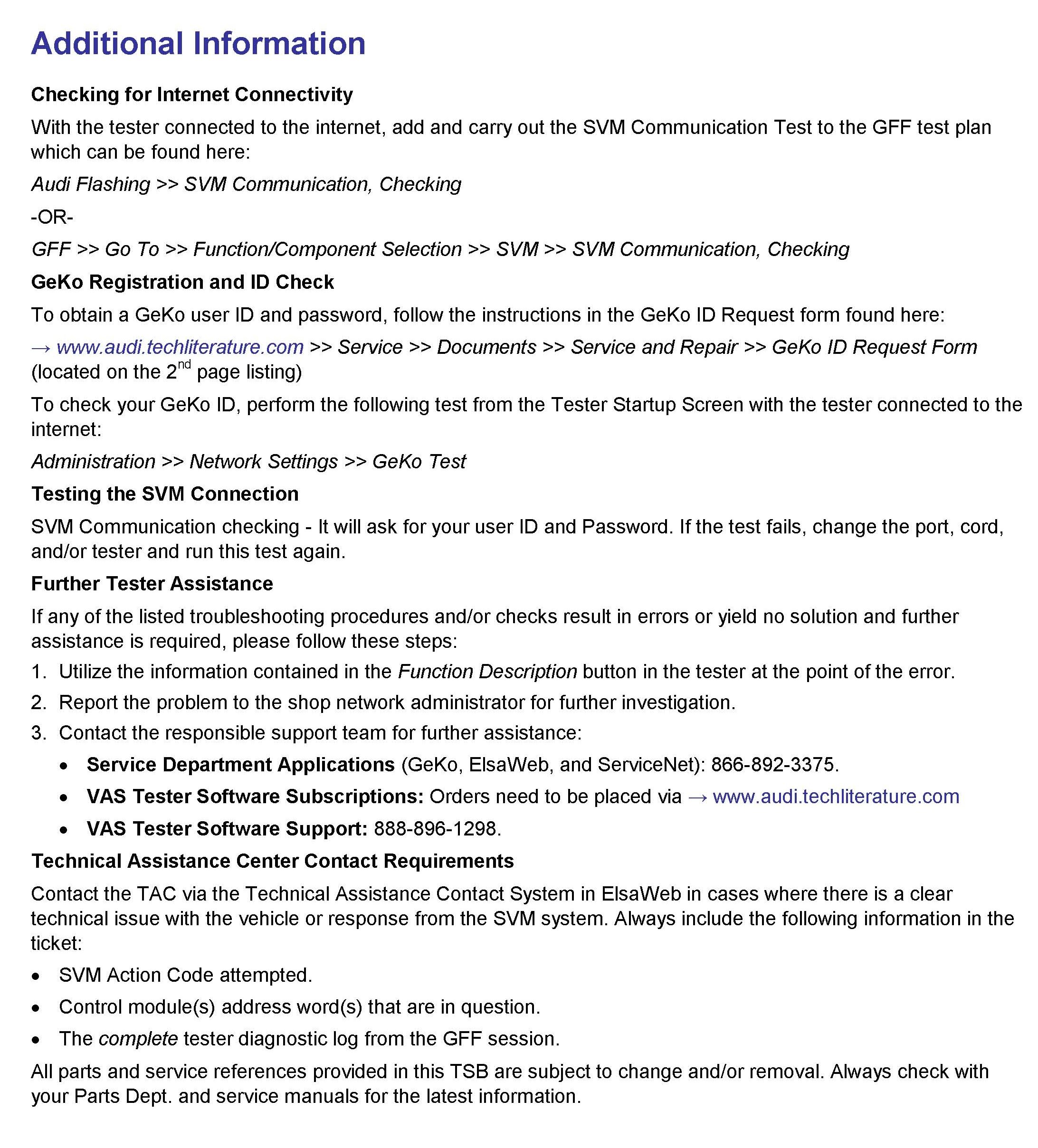 ^ TSB 2011732 00 Software Version Management (SVM), operating instructions.