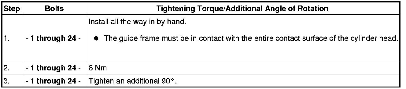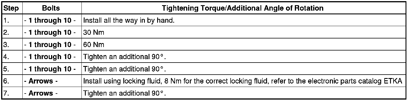 Tighten the bolts in 3 steps according to the tightening sequence: