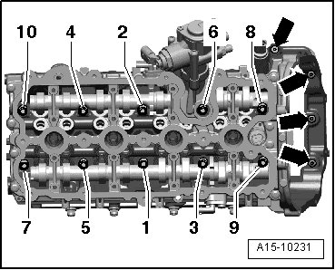 Check the cylinder head on several locations for distortion using a straight edge 500 mm (VAS 6075) and a feeler gauge