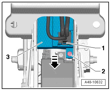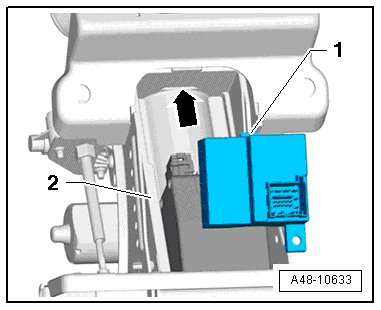 - Slightly lift the power adjustable steering column control module (J866) - 3 - and removed it from the steering column in direction of - arrow -.