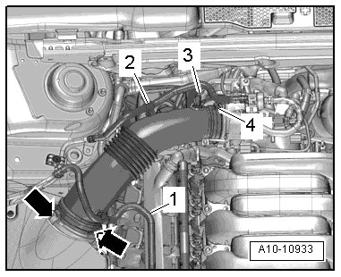 - Remove the vacuum hose - 3 - from the connection on the air guide pipe.
