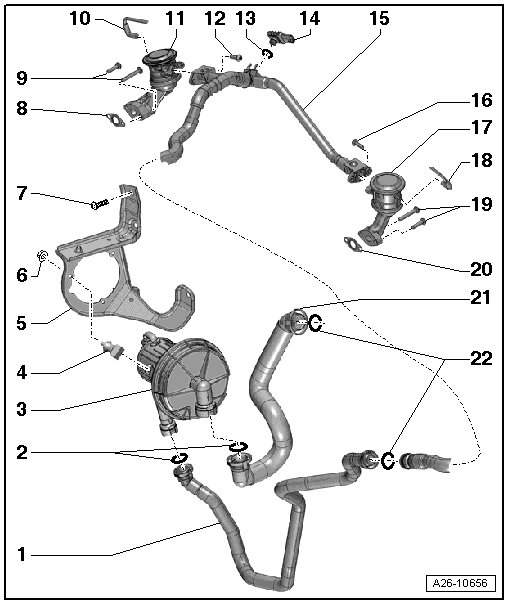 • Checking, refer to => [ Secondary Air Combination Valves, Checking Function and Leakage ] Secondary Air Combination Valves, Checking Function and Leakage