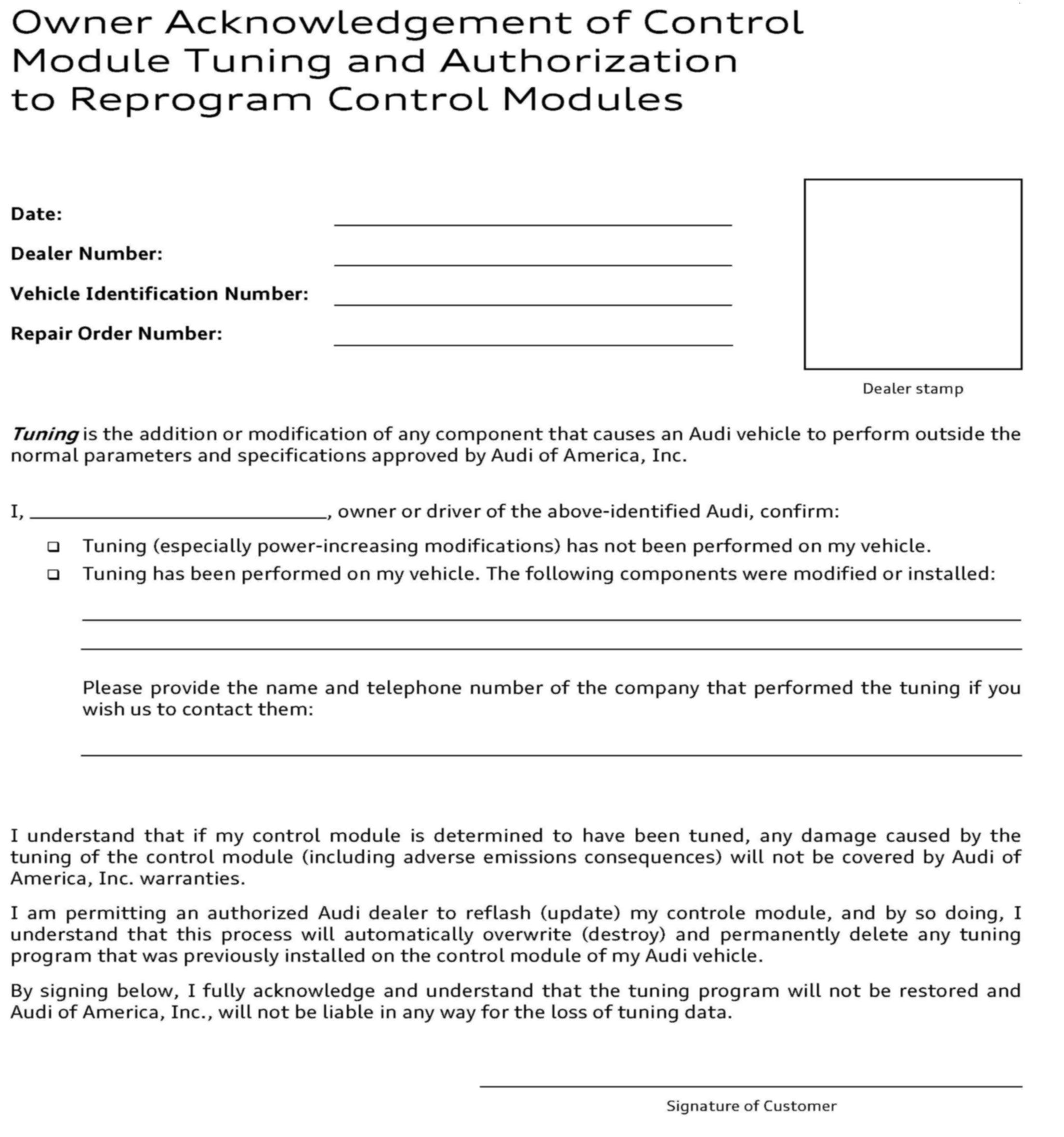 ^ Procedure must be performed on applicable vehicles in dealer inventory prior to sale.