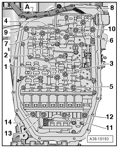 Mechatronic, transmission control module (J217) , multifunction transmission range switch (F125) , transmission input speed sensor (G182) and transmission output speed sensor (G195)