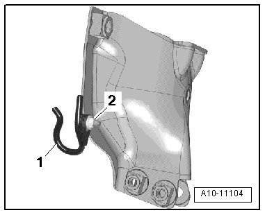 - Tighten the nut - 2 - for the hydraulic oil hose bracket - 1 - to 9 Nm.