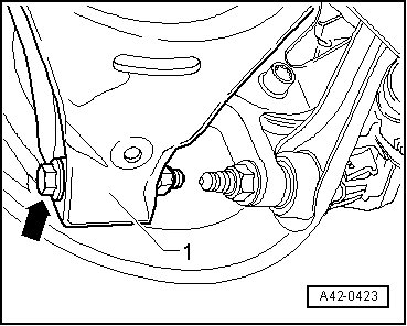 - Remove the bolt - arrow - from the lower transverse link - 1 -.