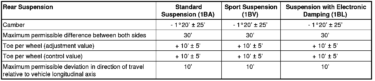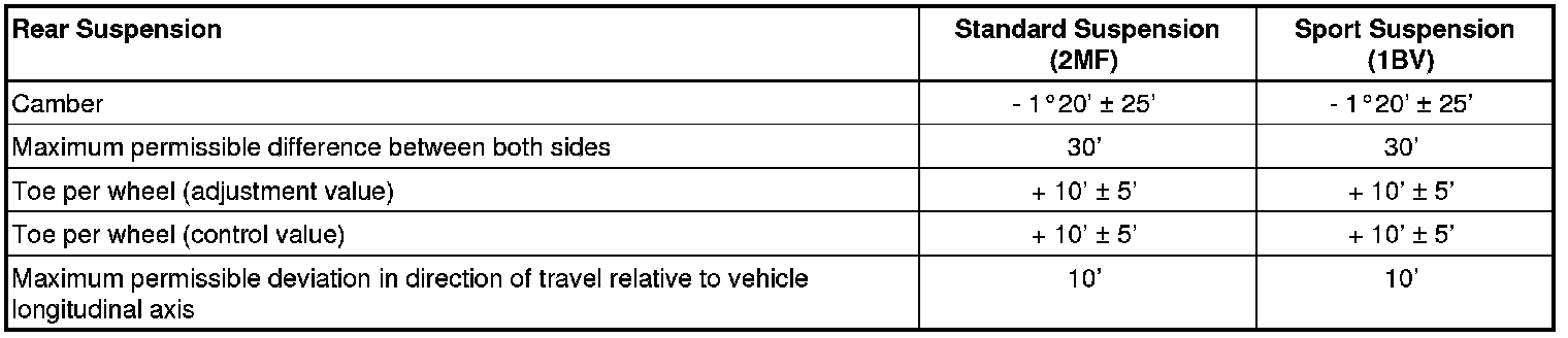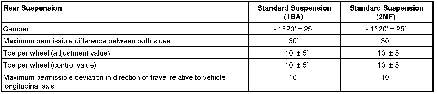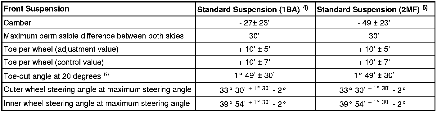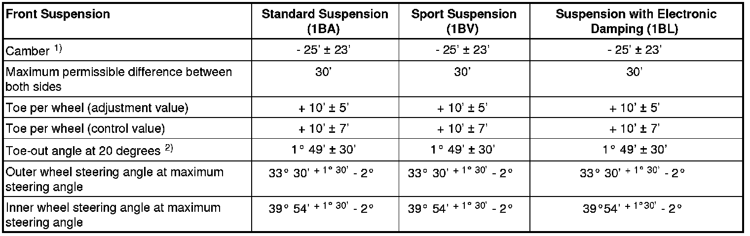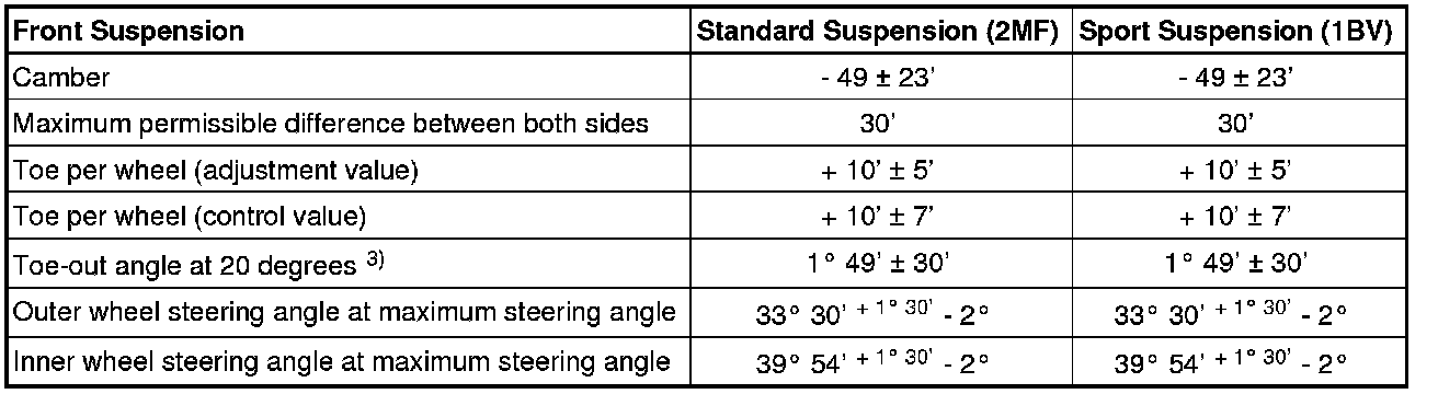 1) A camber value of - 20' applies to the Australian market for the front axle.