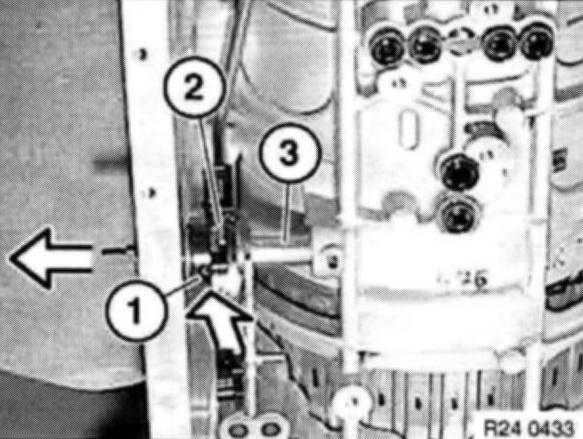 Withdraw manual shift valve shaft (3) from transmission only to such an extent that transmission switch (2) can be removed.
