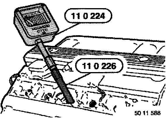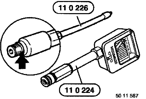 Screw special tool 11 0 226 by hand into spark plug thread and connect special tool 11 0 224.