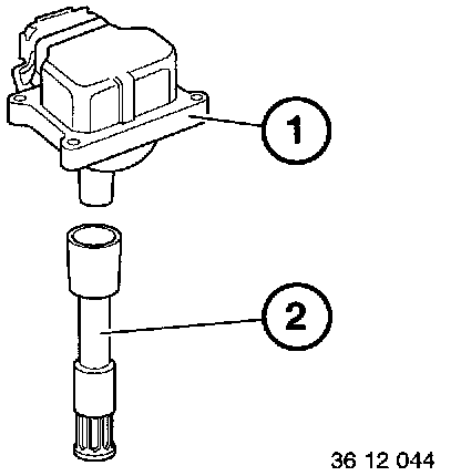 Remove ignition coil (1) from spark plug connector (2).