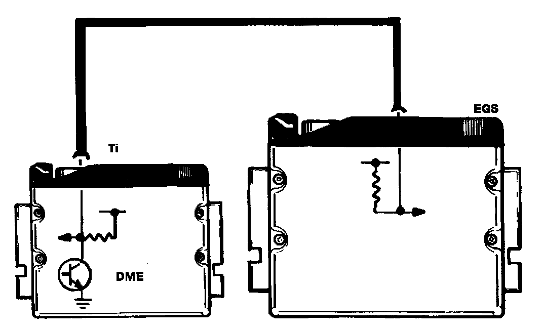 The "Ti" signal is one of the inputs required by the TCM to calculate engine load and determine the shift characteristics. The "Ti" signal is provided by the DME control unit.
