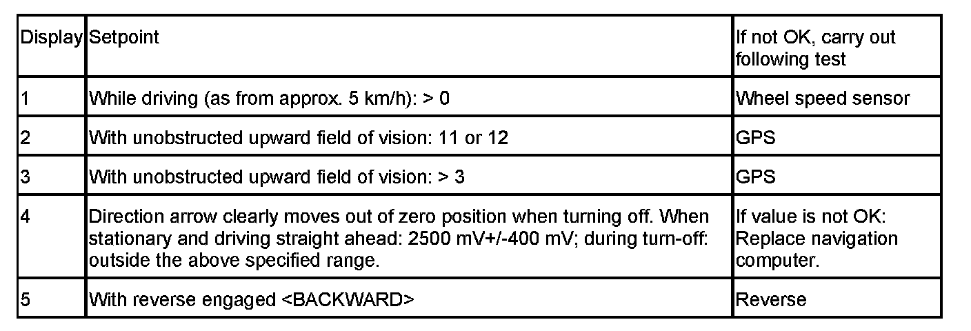 - 1 wheel sensor, number of pulses from speed sensor per minute, left and right wheels As from production break PU99, only the left wheel will be indicated. The line for the right wheel speed signal to the navigation computer has been dropped. If the new operating software is used in an older vehicle, only the left wheel speed signal will be indicated. (Only the signal of the rear left wheel is used on the E46 and E52.)