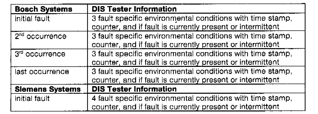 The table below* represents the information that would be available via the DIS tester if the same fault occurred 5 times.