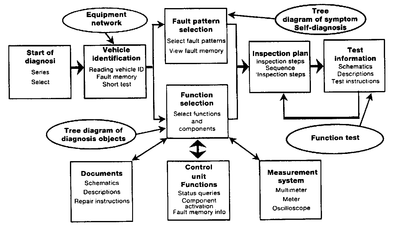 The diagnosis program suggests a test schedule and determines the sequence of tests. These features allow faults to be located more easily and with greater precision.