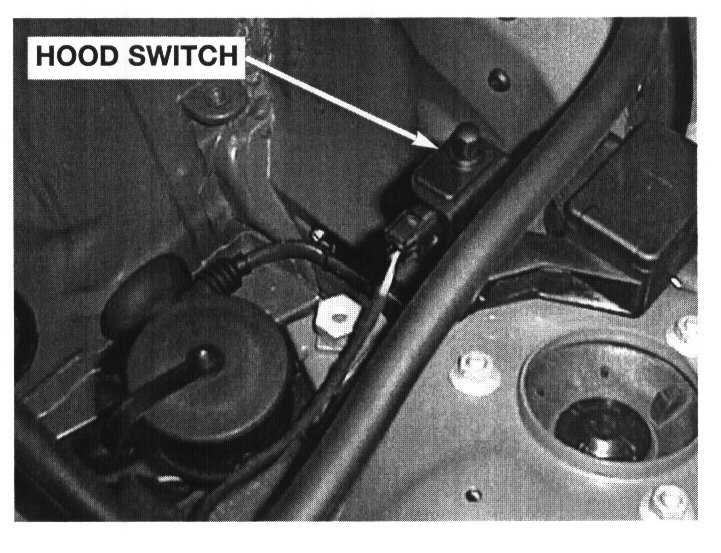 - Hood switch (monitored for closed hood, located under the hood).