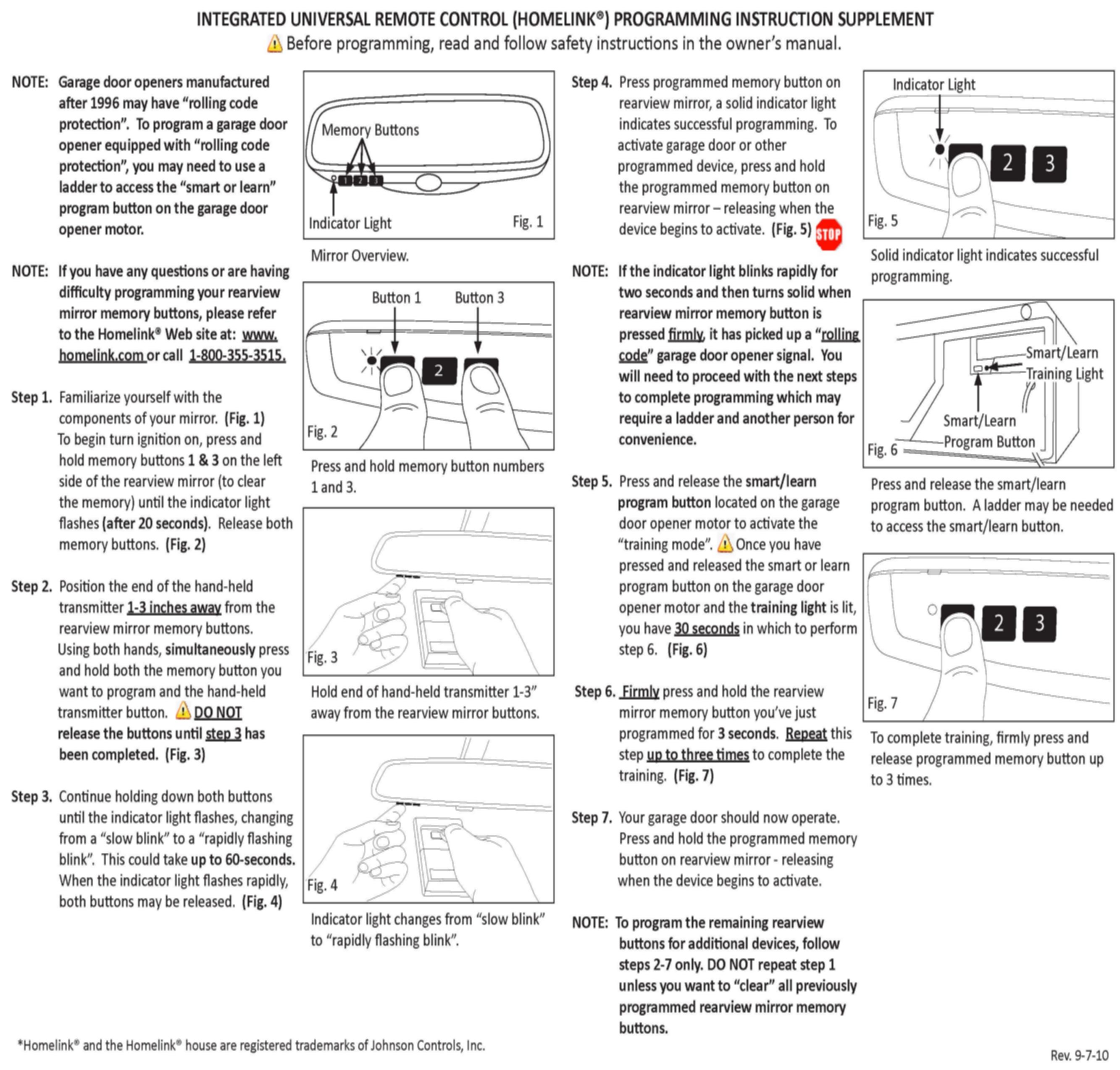 ^ Provide the attachment to the customer and refer the customer to steps 5 - 7. Direct the customer to the instructional videos on the HomeLink(R) website, www.homelink.com/program.php..