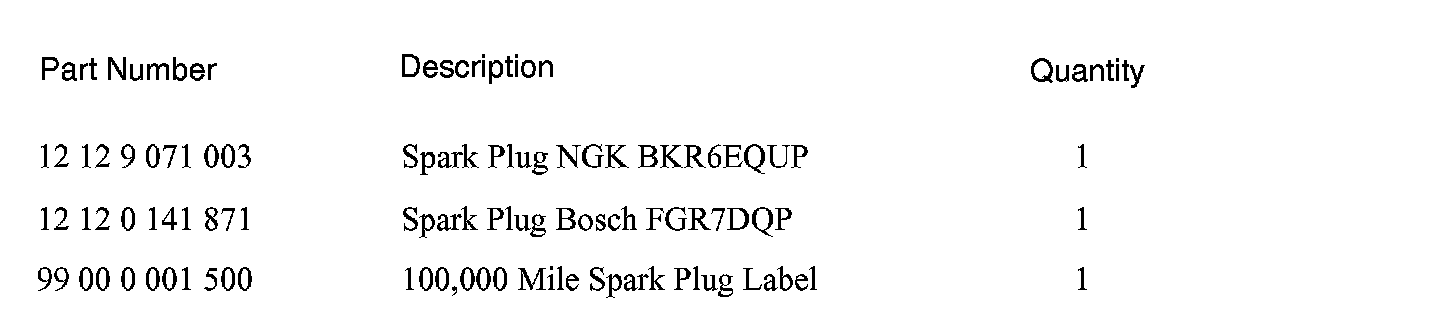 When installing High Performance Platinum Spark Plugs in earlier BMW models a spark plug installation label part number 99 00 0 001 500 should be filled out (mileage and date) and installed on the front radiator support or the right side shock tower in the engine compartment which indicates the 100,000 mile service interval of the new style spark plugs. In addition to the engine compartment label, a note on the repair order or in the customer file will also prevent an unnecessary spark plug replacement during a scheduled maintenance on vehicles which have been equipped with the new style 100,000 mile spark plugs.