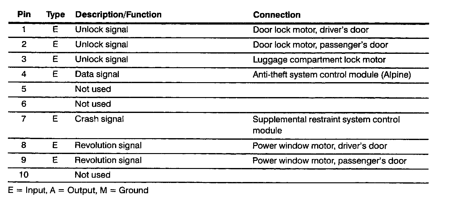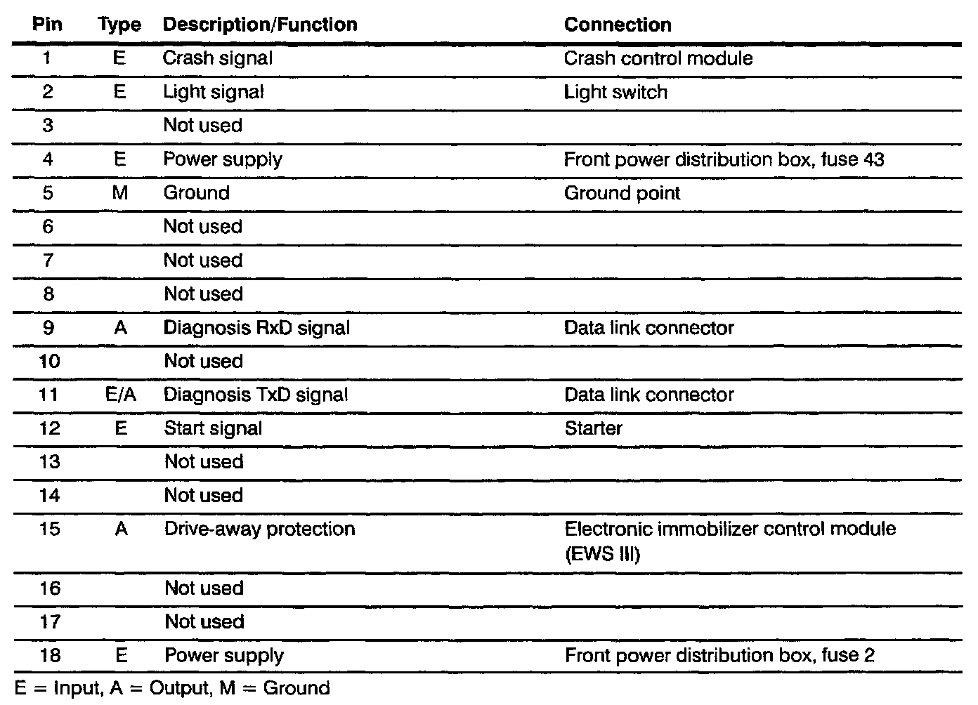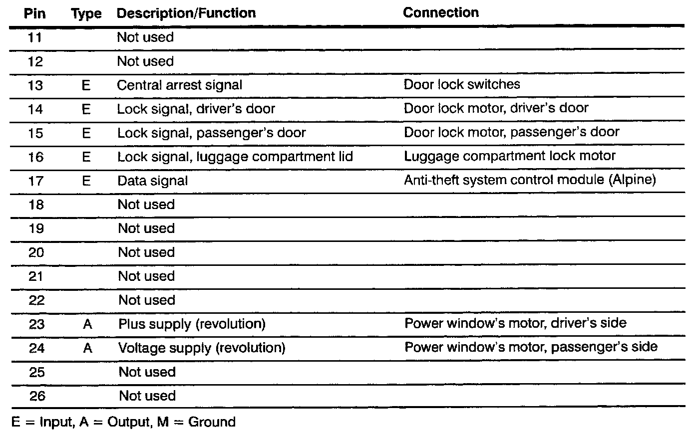 Central Body Electronic (ZXE IV): Pin Assignments A - D: