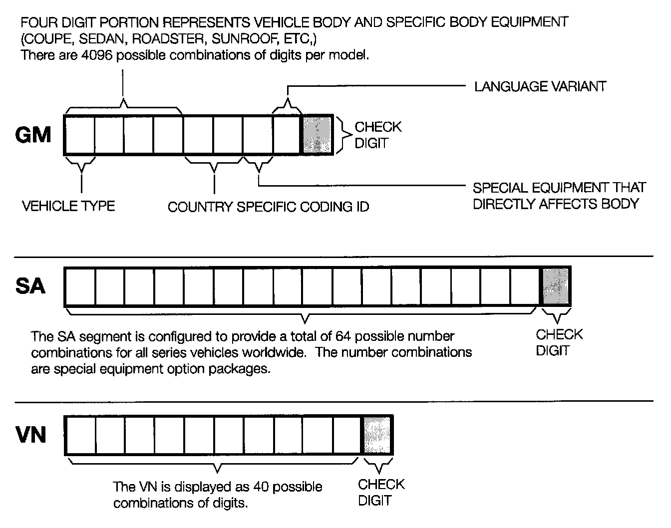 The SA segment is configured to provide a total of 64 possible number combinations (option groups) for all series vehicles worldwide.
