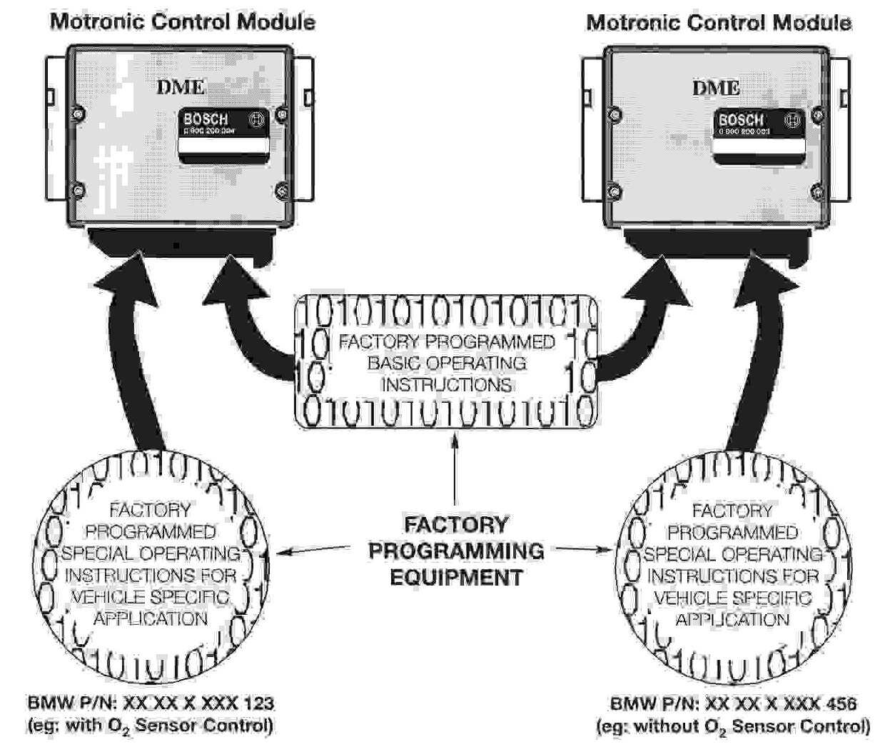 In the past this could only be accomplished by the factory. Factory programming equipment loaded a basic operating system into a blank control module. The basic system was common for all control modules worldwide. Additional specific data was then added to the basic system producing variants of the control module for world wide distribution.