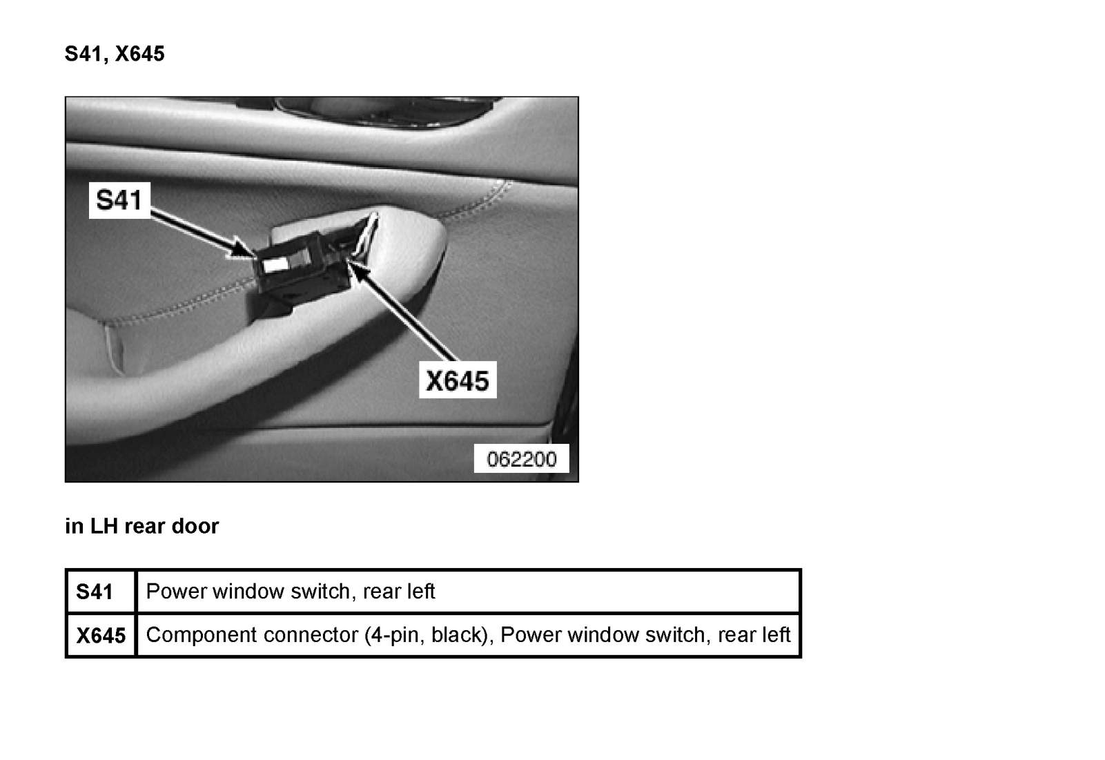 S41 Power Window Switch, Rear Left