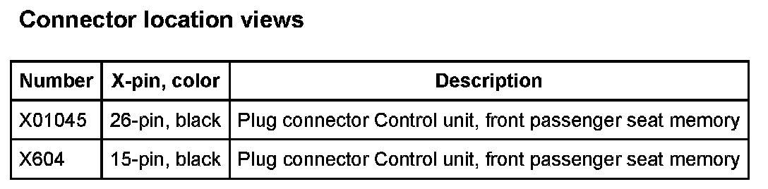 A20 Control Unit, Front Passenger Seat Memory (As of 03/00 With Convertible):