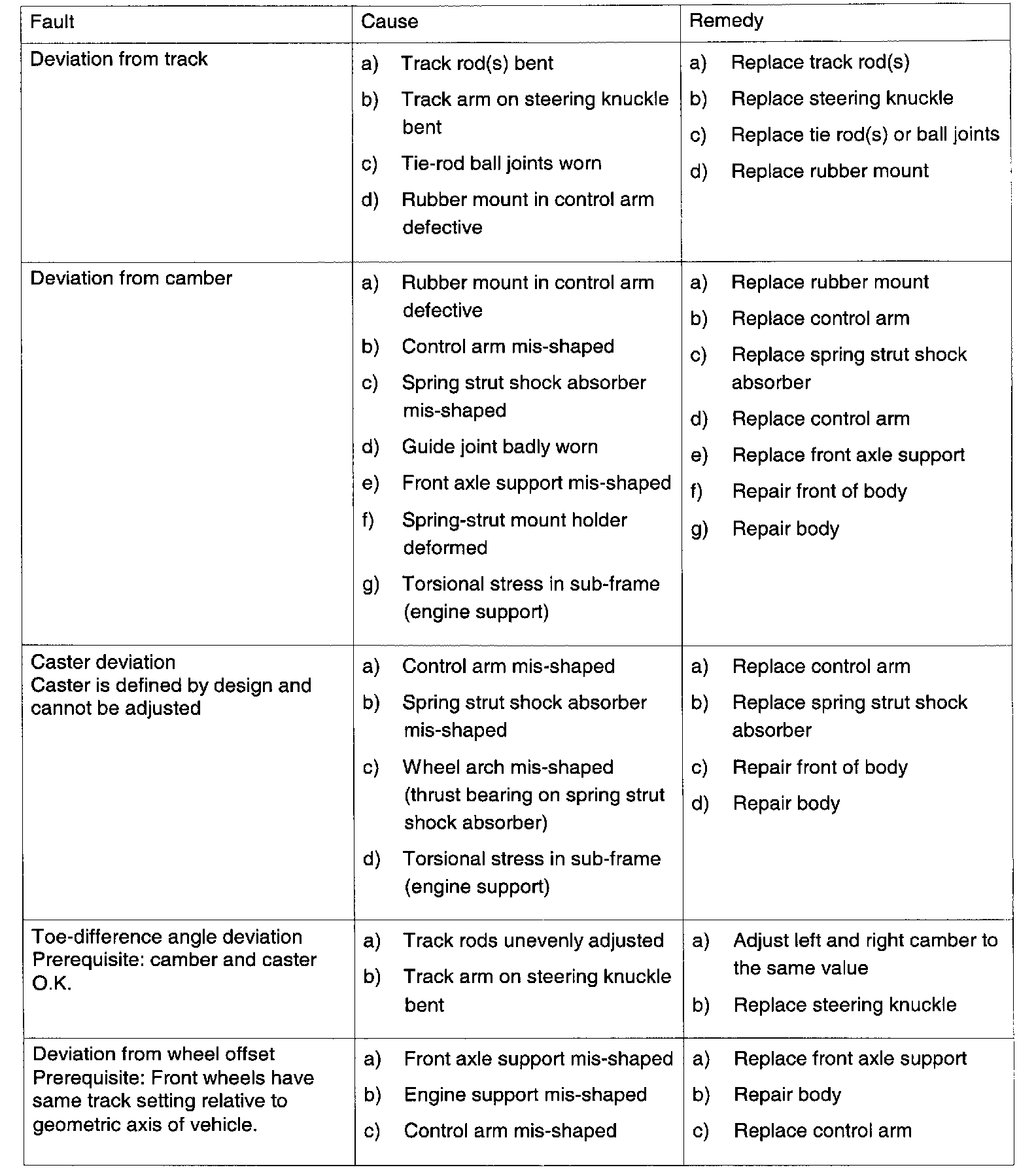 Troubleshooting on the Front Axle (Alignment Check)