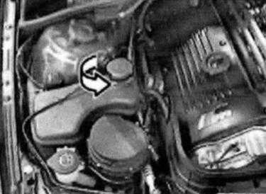 Open cap (1) on coolant expansion tank.