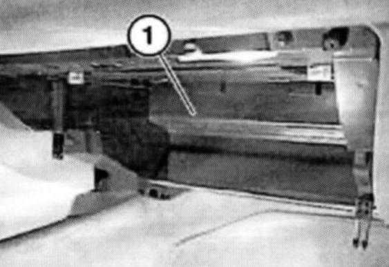 Press retaining hook (2) downwards and remove control unit (3) towards rear from control unit carrier.