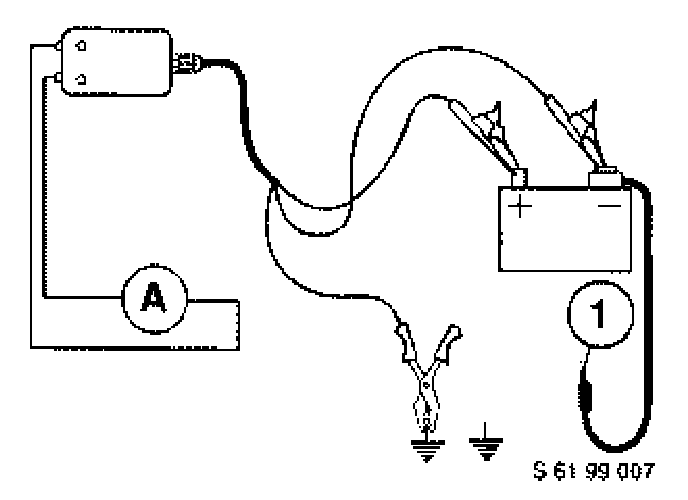 To measure the closed-circuit current, connect the multimeter to the adapter and then unscrew the battery ground lead (1) from the central ground terminal point on the body.