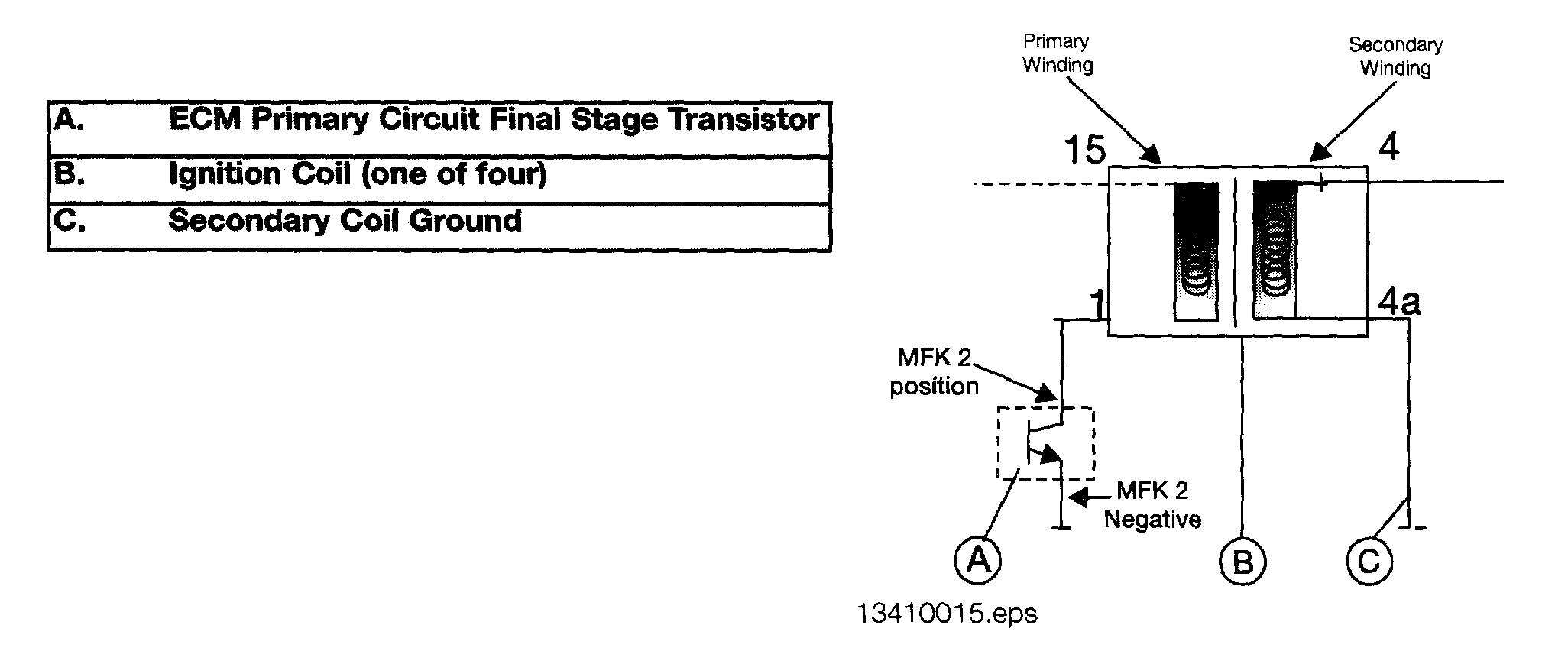 - Resistance of the harness and ignition coil primary winding (terminal 15 to 1 approx. 0.8 ohms) - using the 134 Pin Adapter Set with the ECM disconnected.