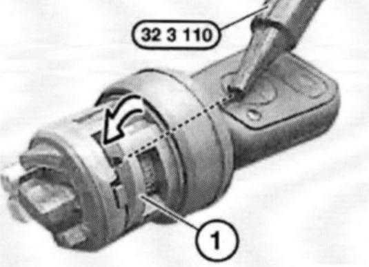 Note: The lock (1) is unlocked with special tool 32 3 110 and the locking cylinder can now be removed. If necessary, turn special tool in hole.