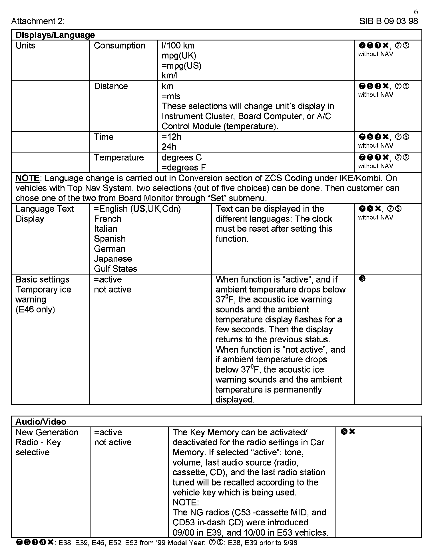 and E39 vehicles produced prior to 9/98.