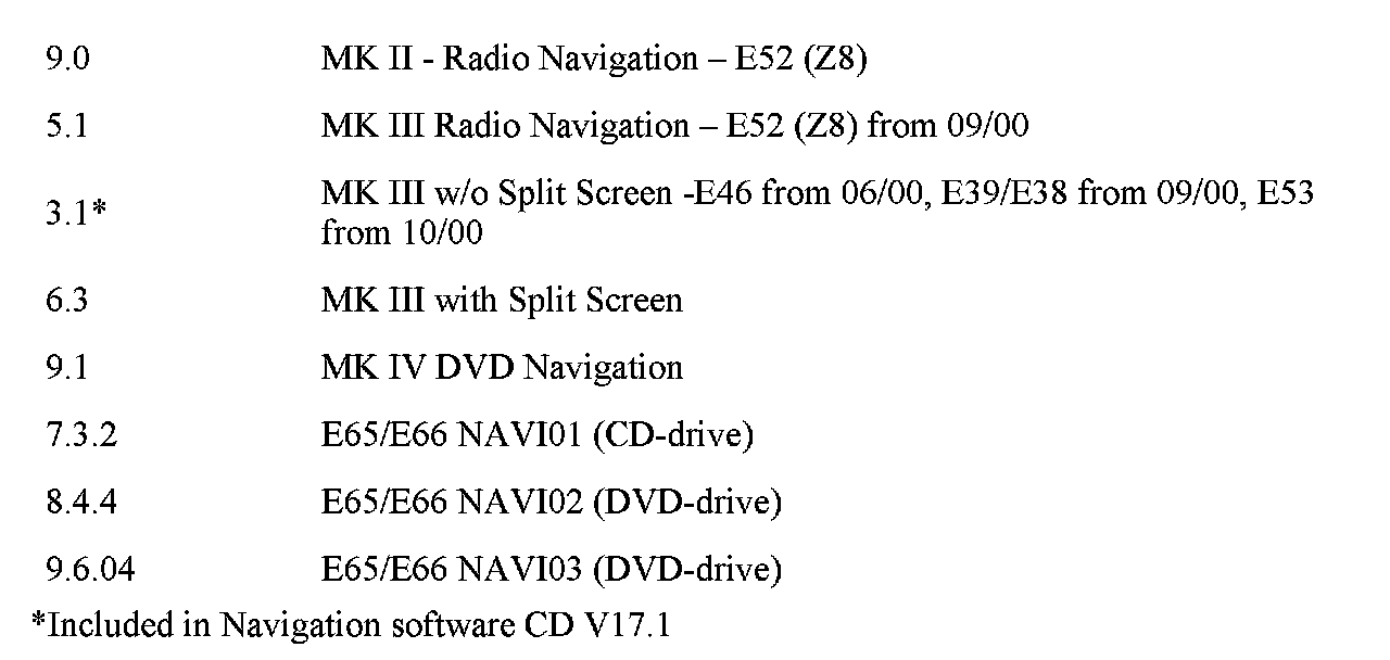 1. Navigation system operating software V17.1 is used on MK III systems without "Split Screen".