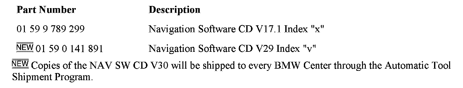 [NEW] Copies of the NAV SW CD V30 will be shipped to every BMW Center through the Automatic Tool Shipment Program.