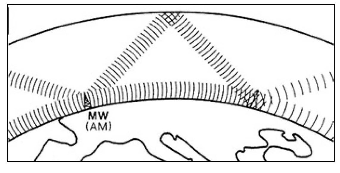AM radio waves generally deliver a powerful, continuous signal over more than a one-hundred-mile radius from their point of origin, even in mountainous or inner-city areas. This is because AM waves are dispersed as ground waves, which follow the curvature of the earth, and space waves, which actually bounce off the upper ionosphere, creating a downward route to the automobile, no matter where it is driven.
