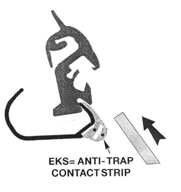 When the contact strip closes, the window immediately (10 ms) reverses direction as with previous anti-trap systems. The contact strip does not require that the anti-trap feature be initialized prior to operation.