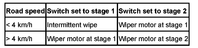 When stage 2 is switched on, stage 1 cuts in at > 210 km/h to prevent the wiper arm from lifting.