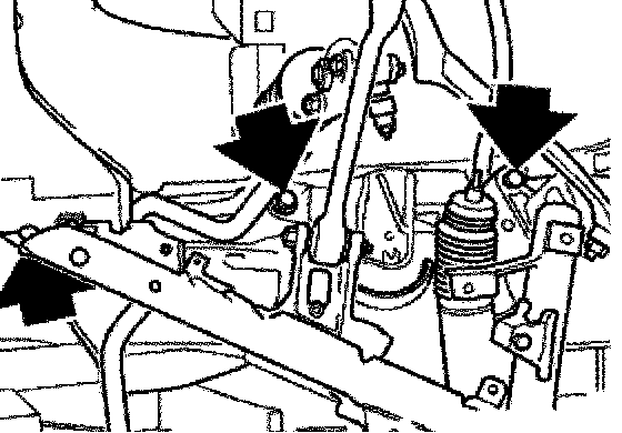 Brake caliper lines remain connected - remove on left and right and tie back to body, refer to Brakes and Traction Control; Disc Brake System.
