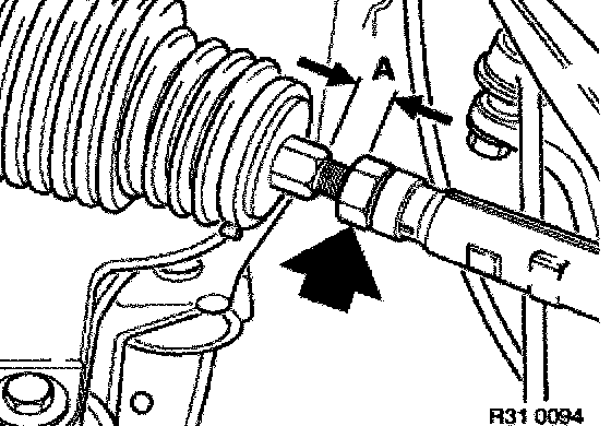 Measure or mark up screw-in length (A) of both track rods, unfasten nut and disconnect track rods.