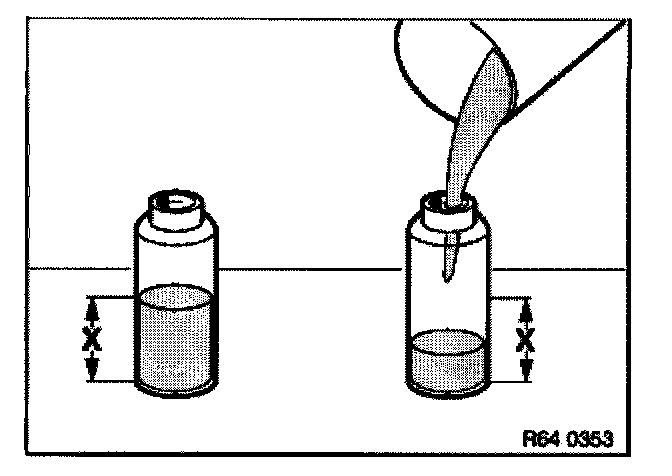 After evacuation, the refrigerant must be filtered in the service station as the oil separator could still contain a liquid refrigerant/oil mixture. The filtering process gasifies the refrigerant completely and only the previously bound refrigerant oil remains in the oil separator. Measure and note down this amount of refrigerant oil.
