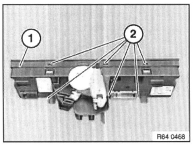 Lever out front plate (1) at openings (2) and remove.