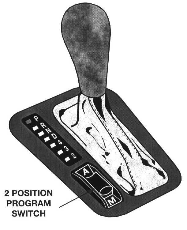 Through the model years there have been various configurations of the program switch. Regardless of it's appearance, the Program Switch provides a momentary ground input signal to the TCM requesting a specific shift program.